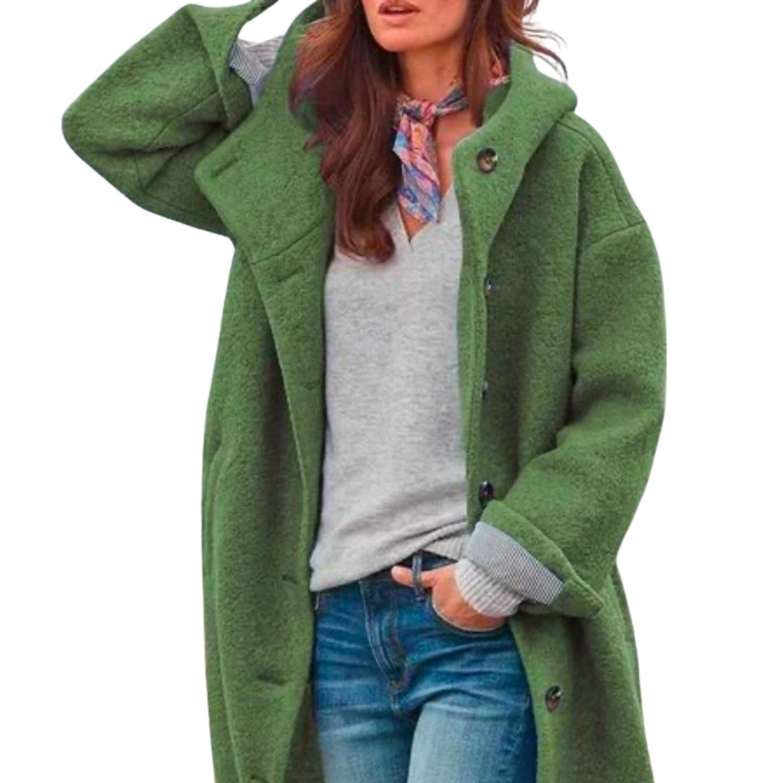 Damen Herbstjacke | Mittellang mit Polokragen & Knöpfen | Weiches warmes Gewebe für kühle Tage