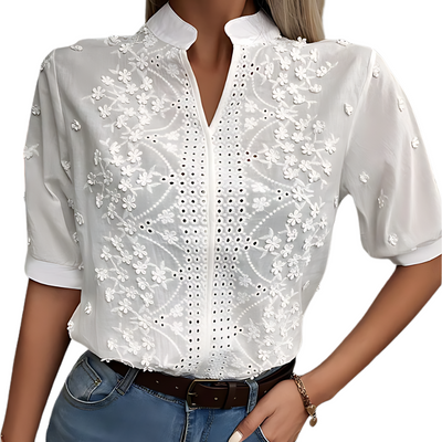 Damen Bluse | Blumendruck | Spitzen-Details | Eleganter Schnitt