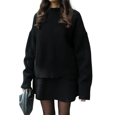Damen Strick Zweiteiler | Überdimensional Pullover & Minirock | Herbst Outfit