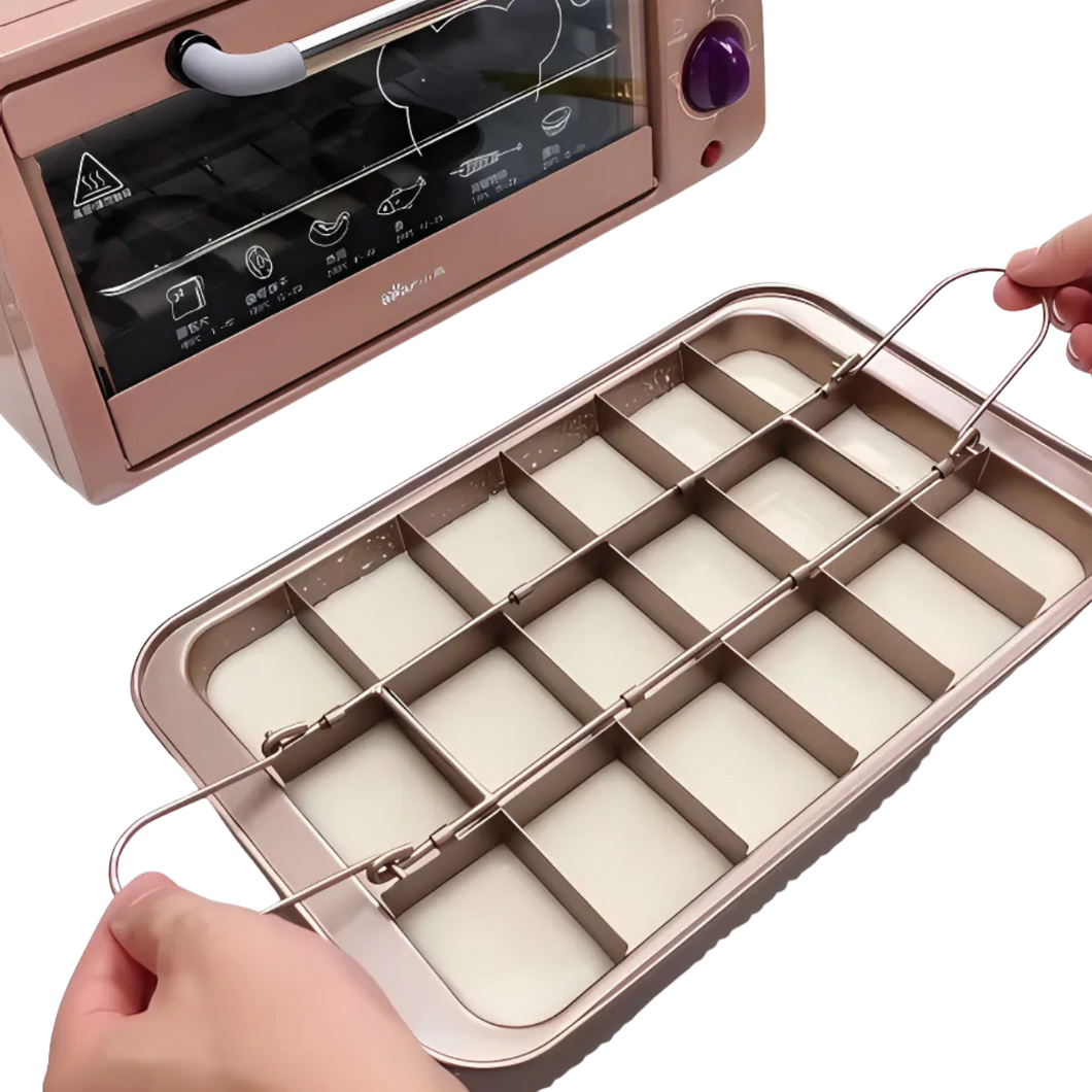 Mit dieser cleveren Backform mit herausnehmbarer Trennwand gelingen dir perfekt geformte, gleichmäßig gebackene Stücke – ganz ohne Schneiden oder Messen. Einfach befüllen, backen und direkt servieren!