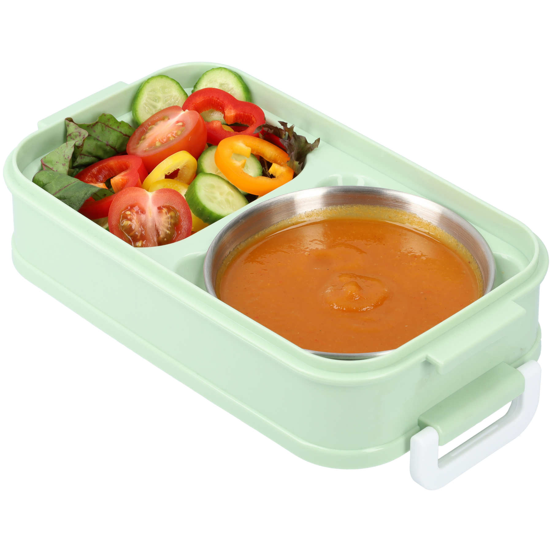 • 🥣 Mit Suppenschale & Fächern: Halte verschiedene Speisen sauber getrennt – perfekt für Suppen, Salate, Snacks oder Sandwiches.